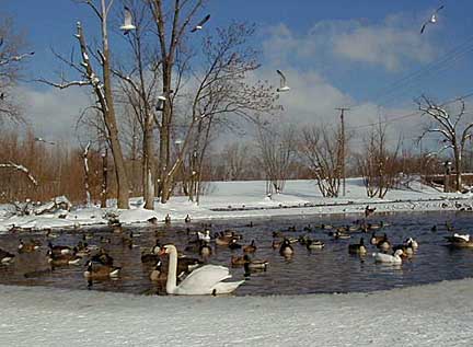 Geese, ducks, swans and seagulls all make their home at the dam.